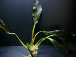 | 2005年1月採集のウルグアイエンシス レッドと言う名称で導入された本株! 画像の株からもワイルドそのままの葉の様子が伺えます。 若干の葉は痛みもありますが、根茎の状態のよさは格別です。 この種は、ダークな葉を持っている為にレッドとは?と思われますが、 新芽のまさに成長点では、薄紅の色をにじませています。 今後、水槽内での成長に伴い、ダークレッドホレマニーの様相も見られる可能性もあり、非常に楽しみな株となっています。
