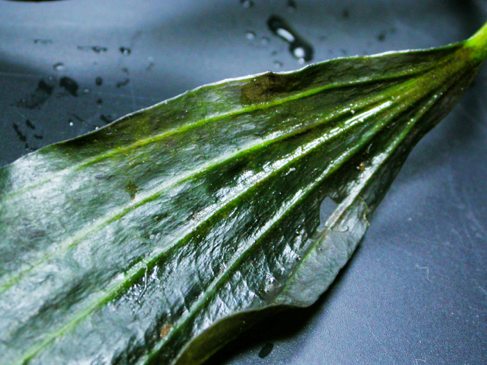 | ワイルド株の様子をしっかりと表している株 現地の水流によるくねりが見られますが、 葉脈の入り方など詳細がよく確認できる株です。 |