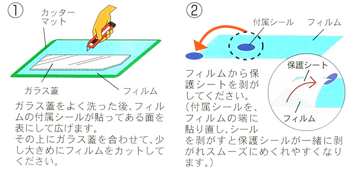 ② ガラス蓋に貼るだけなので、どなたでも簡単に使えます。
