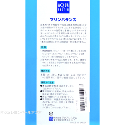 アクアシステム マリンバランス(海水用ミネラル添加剤)は、すべての海洋生物(魚・サンゴ)にとってミネラルは健康な育成に不可欠な要素です。