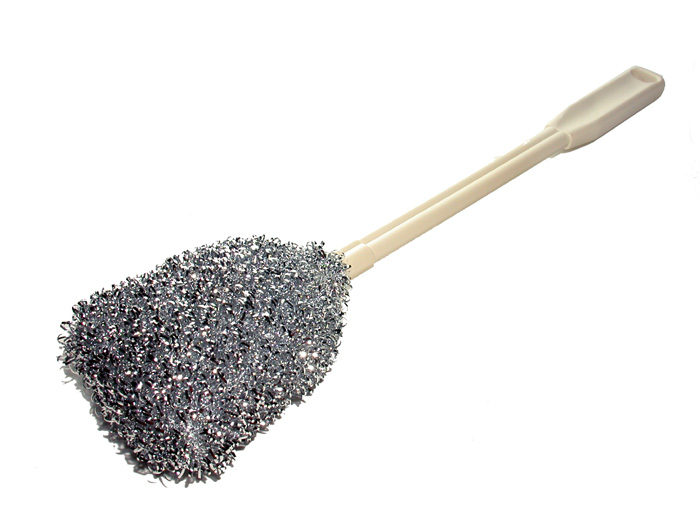 極薄のアルミ蒸着デトロンフィルムテープの特殊構造編み物で、やわらかいテープが刃のように立って見事に手軽に苔を取ります。