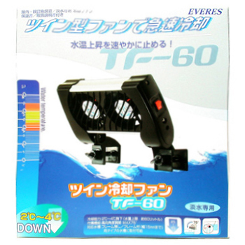 ツイン冷却ファンTF-60は強力なツイン冷却ファンが水槽内の水温上昇をストップし、水温を約2~4℃下げることができます。 (約60リットルまで)また、最大75°まで 風向き調節ができ効率の良い冷却が可能です。 フレーム無し/フレーム付(幅15mmまで)の両タイプの水槽に取り付けが可能です。