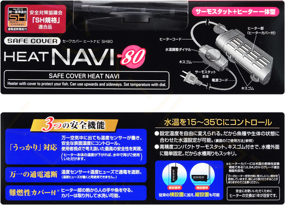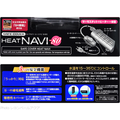 セーフカバーヒートナビSH80は、水容量約26L以下の水槽に最適な安全カバー付温度調節型SHオートヒータです。