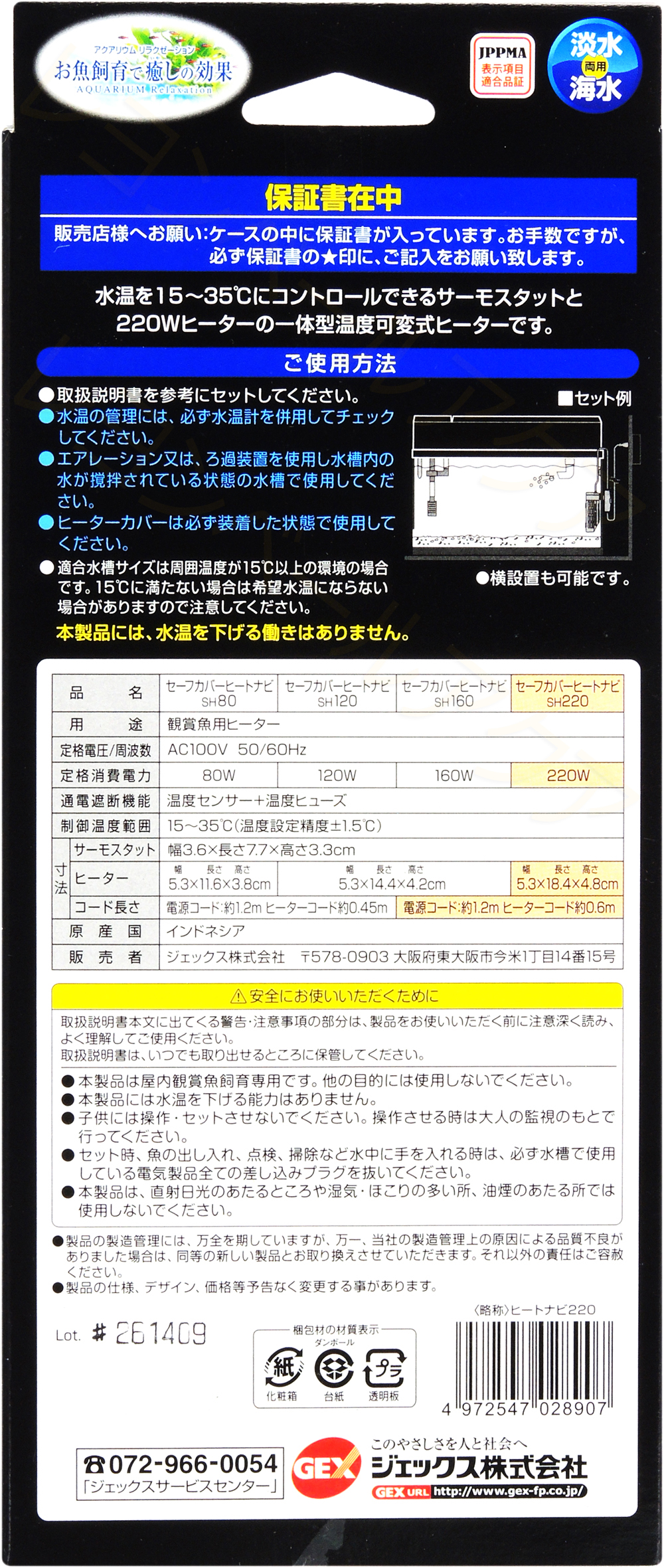 セーフカバーヒートナビSH220は、水容量約110L以下の水槽に最適な安全カバー付温度調節型SHオートヒータです。