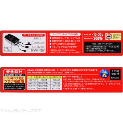 GEXサーモスタットNX003Nは観賞魚飼育水槽内の水温をダイヤル設定された温度数値に安定保温する器具です。