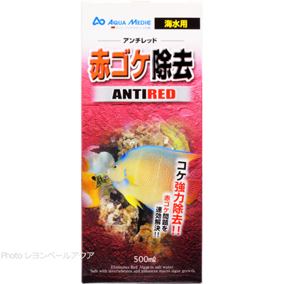 カミハタ 赤ゴケ除去 アンチレッドは、海水中のしつこい赤ゴケ(藍藻、シアノバクテリア)を簡単に除去することが出来ます。
