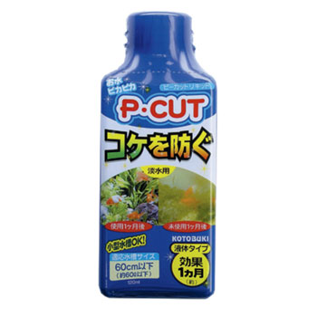 P-CUT中の酸化亜鉛ウィスカ及び銀化合物が水中で徐々に溶け出し、緑藻類の成長を抑制します。