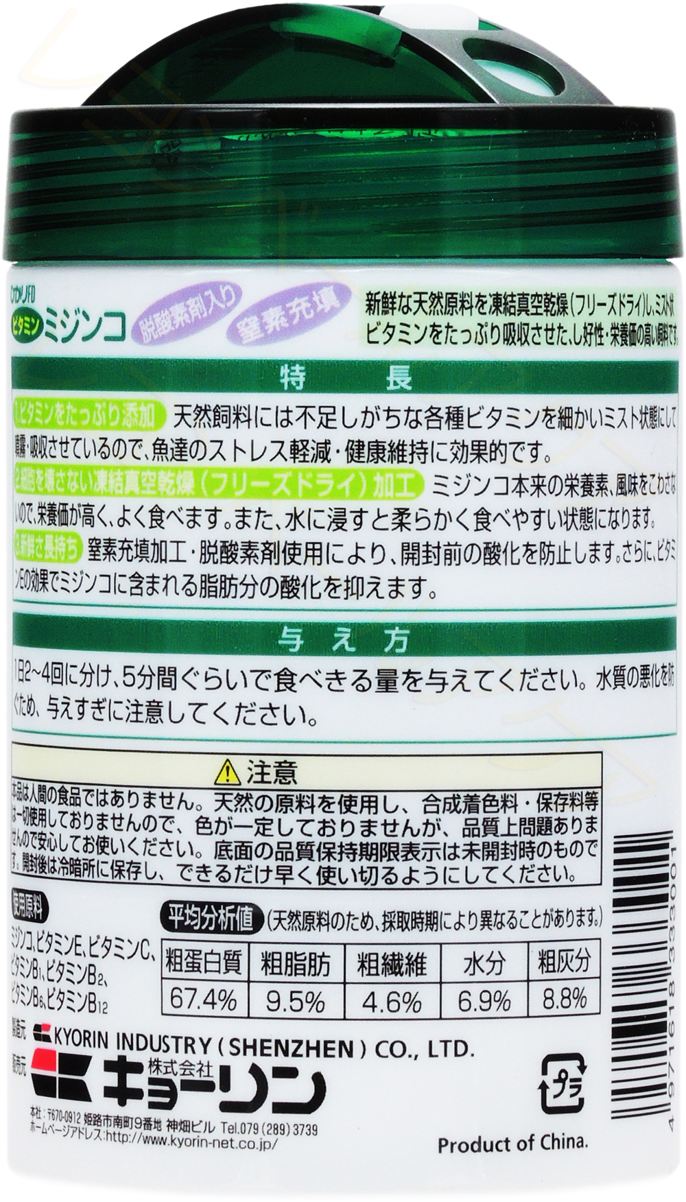 ひかりFDビタミンミジンコは、天然飼料ならではの抜群の嗜好性と各種ビタミン添加による栄養バランスにも優れたタマミジンコをフリーズドライしたものです。 配合飼料には見られない抜群の嗜好性です。