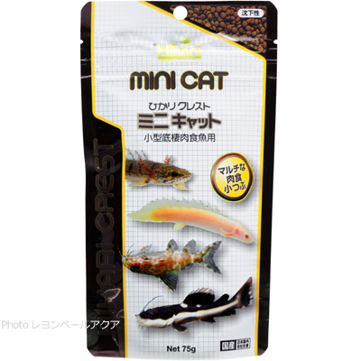 ひかりクレスト ミニキャットは、小型底棲肉食魚のための小さな粒のフードです。