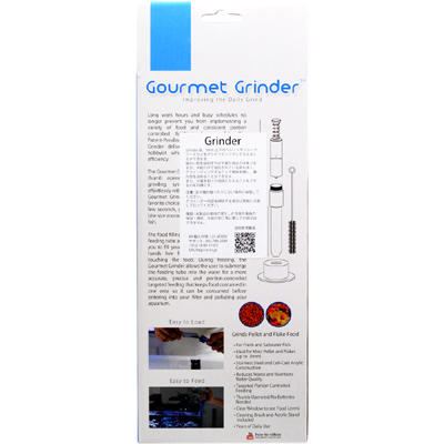 3mm以下のペレットやフレークフードなどをグラインディング(擦り潰す)して与えることができます。 細かい餌を使用すれば不要な商品ではありますが、 大粒だけでしか発売されていない特殊な餌や、餌付けの難しい個体に粒を砕くことで趣向性が高まることで餌を食べ始めるなどの効果も期待できます。 また、少量を狙った個体に与えることもできるのも特徴です。魚がパイプから餌を食べる姿を見るのも楽しみの一つになるかもしれません。
