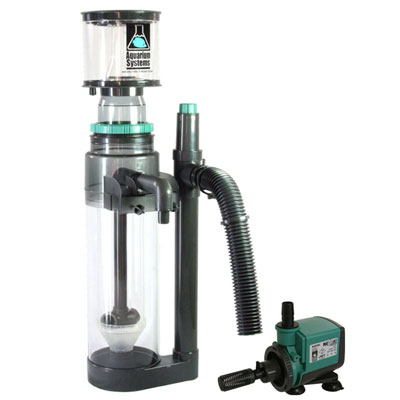 ※プロテインスキマーとは水中に溶け込んでいるタンパク質や細かいゴミなどを微細な気泡に貼り付けて取り除いてしまう装置です。有害なアンモニアに変化する前のタンパク質を事前に処理してしまおうというものです。