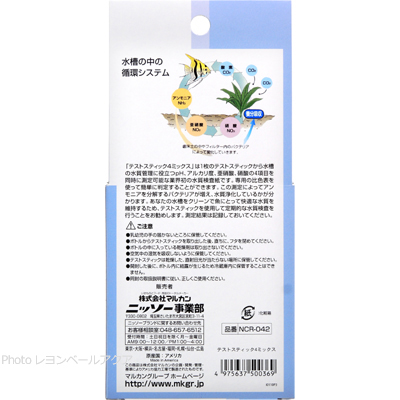水槽内のアンモニア濃度を業界初(特許取得)試験紙一枚で簡単に測定する事ができます。
