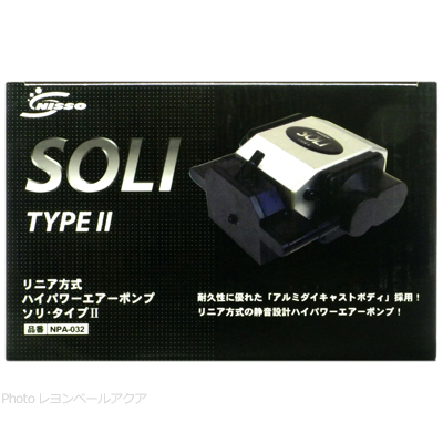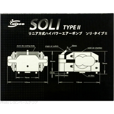 SOLI TYPEⅡソリ タイプ2は、ハイエンドユーザー向けのリニア式ハイパワーエアーポンプです。ハイパワーながら、低音性エアーポンプで、空気の排出量は60L水槽で、5~8本への供給が可能です。