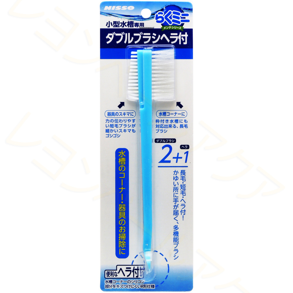小型水槽専用、長毛・短毛・ヘラ付き!かゆい所に手が届く!多機能ブラシです。 水槽コーナーのシリコン部分をキズ付けにくいR形ヘラが付いています。