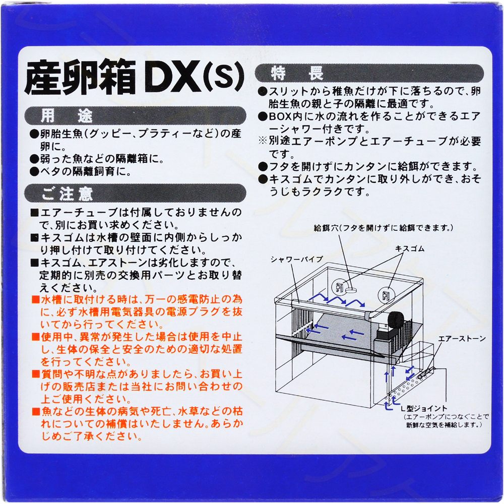 産卵箱DXは、水の流れを作るシャワーパイプ機能が追加になり、フタを開けずに稚魚等にエサを与えることが出来る新産卵箱です。