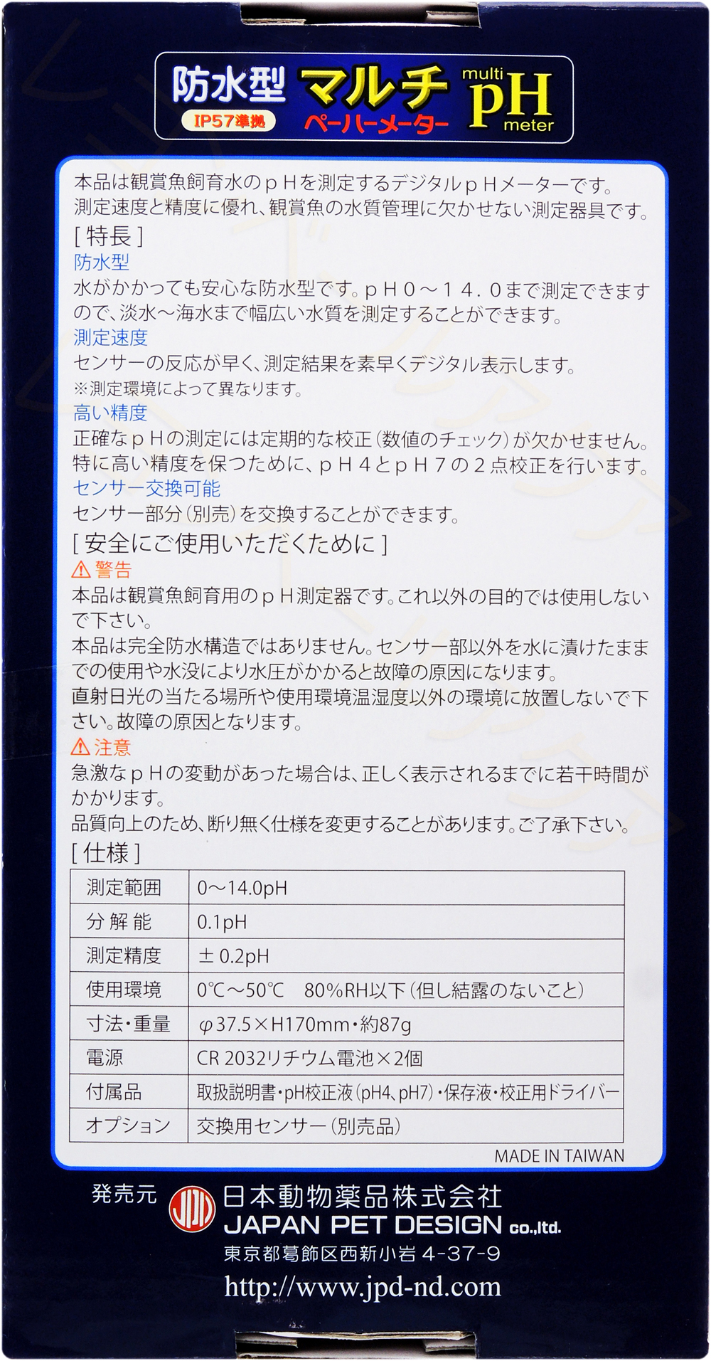 日本動物薬品 マルチpHメーターは、観賞魚飼育水のPHを測定するデジタルPHメーターです。