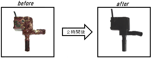 溶液に浸けて使用するためパイプの奥までしっかり汚れを落とすことができます。またインペラーやOリングに無害のため、そのまま使用することができます。