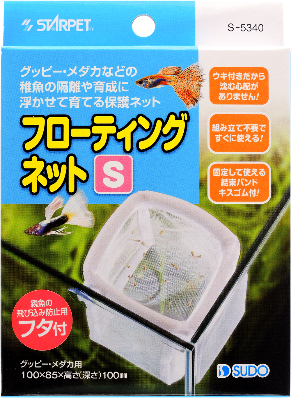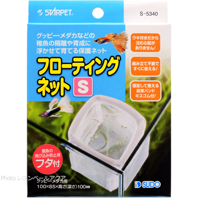 グッピーやメダカなどの稚魚の隔離・育成に、浮かべるタイプの保護ネット。組み立て不要ですぐに使用することができます。
