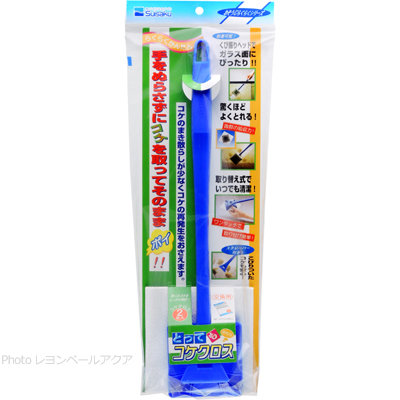 とってもコケクトスは取ったコケをしっかり吸収する「コケクロス」を便利な柄に装着して作業効率アップ! コケクロスを先端に取り付けることによりコケをまき散らさず、さらに手を濡らすことなく掃除ができます。 頑固なコケ用のスクレイパー付。