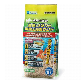 天然採取したゼオライトをより効果的に高まるようにミックスした鑑賞魚用底砂です。 有害なアンモニアを吸着し、気になるニオイを消臭することができる底に敷くだけでろ過効果のある底砂です。