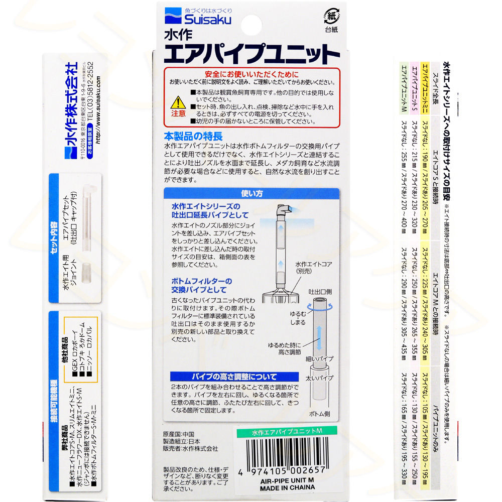 水作 エアパイプユニットは、エアリフト式 水中フィルターにつなげて水面近くに自然な水流を作ります。