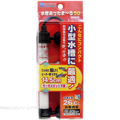 観賞魚飼育に不可欠であるヒーターをコンパクトサイズ(14.5cm)にすることにより水槽内ディスプレイの自由度を高めました。