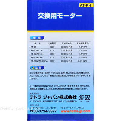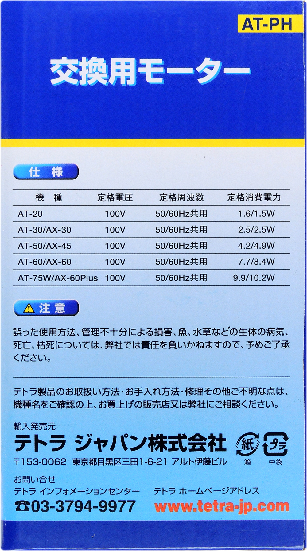 テトラ 交換用モーター オートワンタッチフィルター/オート パワーフィルター用は、各 AT-Mini/AT-20/AT-30/AX-30/AT-50/AX-45/AT-60/AX-60/AT-75W/AX-60Plus専用の交換モーターです。それぞれの機種に応じた交換用モーターをお選びください。