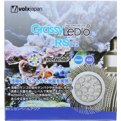 ボルクスジャパン Grassy-LeDio グラッシーレディオRS122は、大光量とスペクトルの補完だけでなく観賞のための高い演色性の実現に成功し、パワーアップしてリニューアルしました。高品質の最新LED素子の採用により省エネと大光量を実現しています。また拡散プリズムレンズの採用により高いブレンド性を実現しています。特徴的な大型ヒートシンクより高い放熱性を確保しています。