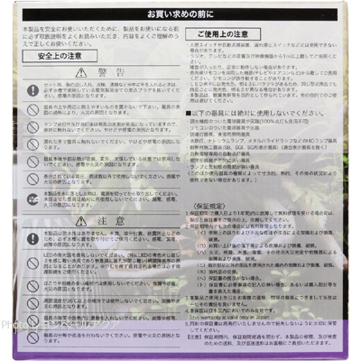 | 素子構成 | UV×2 Violet×3 RoyalBlue×2 Blue×2 Cyan×1 - OutdoorWhite×2 - |