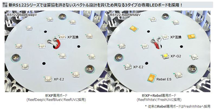 【新RS122シリーズでは妥協を許さないスペクトル設計を貫くため異なる3タイプの専用LEDボードを採用!】