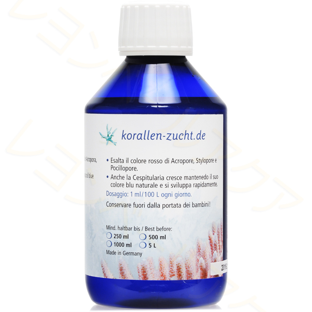 B-Balance は重要なミネラルと添加物を含みます。青色のウミアザミは水槽内で数週間から数ヶ月で成長を止め、死んでしまう理由を我々は見つけました。B-Balance はこれらの綺麗な生物を水槽内で維持し、増やすための添加物です。SPS やLPS などのイシサンゴ、特にSPS のピンク、赤が色揚がりします。サンゴは健康的に強くなります。