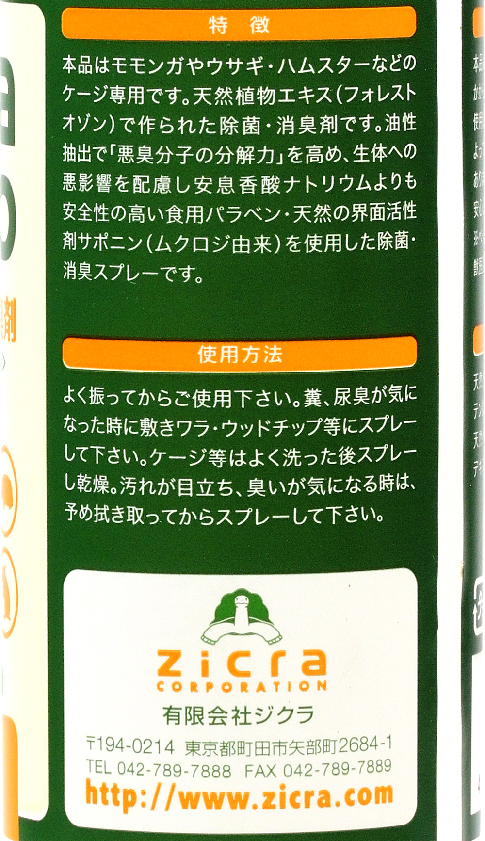 モモンガやウサギ・ハムスターなどのケージ専用です。天然植物エキス(フォレストオゾン)で作られた除菌・消臭剤です。