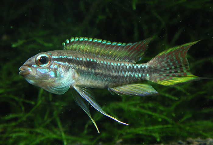 華奢なイメージを持ったアピストグラマであり比較的小型種である。