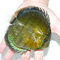 NG-2 原種天然 ナナイ産 ペルビアングリーンディスカス 背鰭付近難有 オレンジeye 13.5 ±cm |
