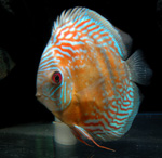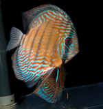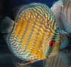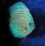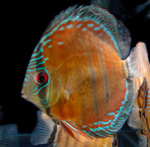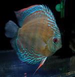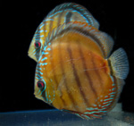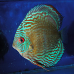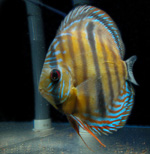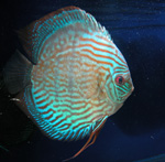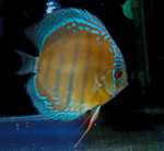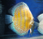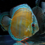 ジャカレカパ産 ロイヤルブルーディスカス 壱号機15-16cm かなり黄色の強い基調色を持つロイヤルブルーがやってきた。 明るいディスカスで華やかな魚体である。完売 |