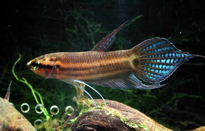 | スペードテールの先端が長く伸びる美しいフォルムに尾鰭の柄が更に 優雅さをアップさせ品格があるプグナックス系のベタ |